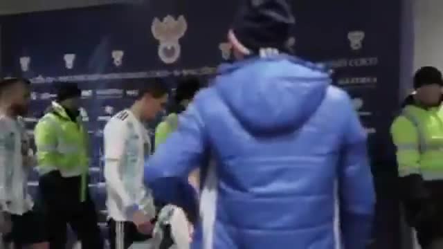 Спортсмены обменялись после первого тайма товарищеского матча между Россией и Аргентиной, когда расходились по раздевалкам.