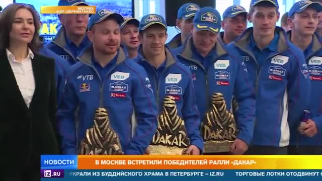 В столичном аэропорту Шереметьево родные, друзья и болельщики встречали сегодня триумфаторов ралли-марафона "Дакар". Команда "КамАЗ-мастер" победила в самом сложном и престижном рейде планеты уже в пятнадцатый раз.