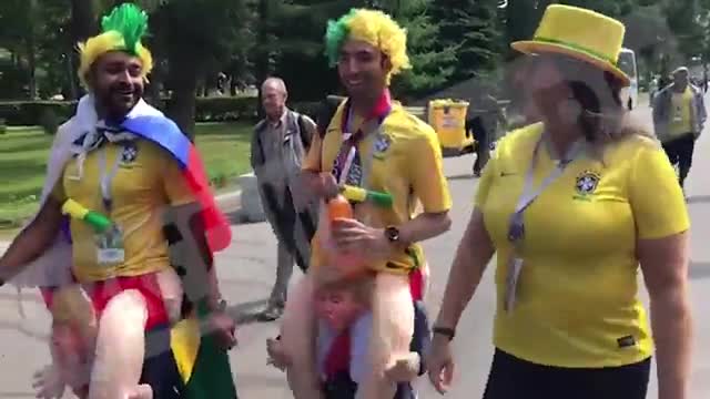 В Петербурге были замечены бразильские болельщики, передвигающиеся "верхом" на Трампе. Они облачились в шуточные костюмы с американским президентом и в таком виде отправились на стадион поддержать свою национальную сборную в мачте с Коста-Рикой. Встреча начнется сегодня в 15:00.
