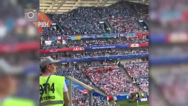 Сборная России проигрывает команде Уругвая со счетом 0:2 после первого тайма в матче группового раунда чемпионата мира по футболу — 2018. Игра проходит на стадионе "Самара-Арена".