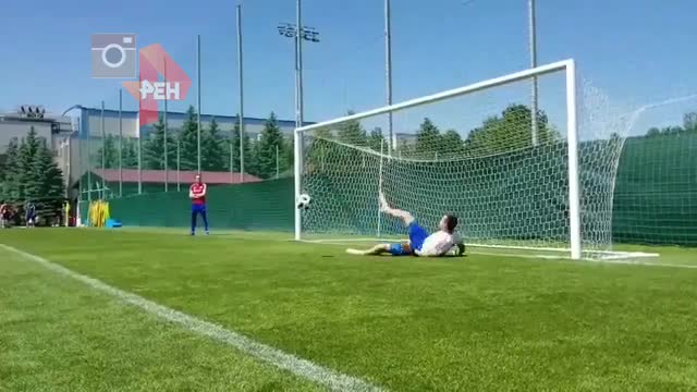 В Twitter сборной России по футболу появилось видео, на котором форвард Артем Дзюба на тренировке работает на воротах. Нападающему удалось эффектно отразить удар, однако мяч он не подобрал руками, как это обычно делают голкиперы. Удар он отбил ногой. Именно так Акинфеев отбил один из мячей, отправленных испанским спортсменом в ворота РФ во время матча 1/8 финала ЧМ, что позволило россиянам впервые в новейшей истории выйти в 1/4 финала мирового первенства.