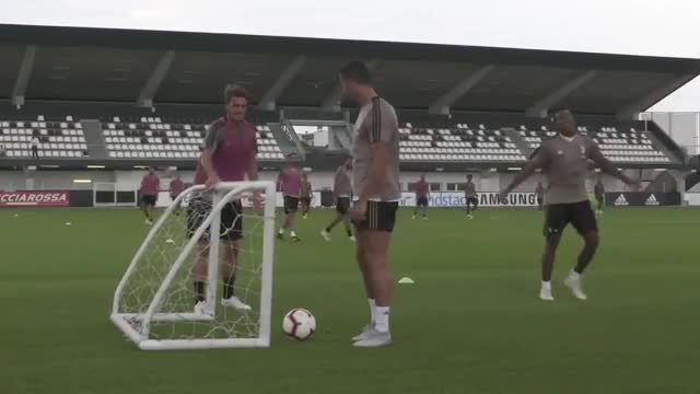 Во время тренировки Ругани просто отодвинул мини-ворота перед стоявшим Роналду и таким образом не дал нападающему забить гол.