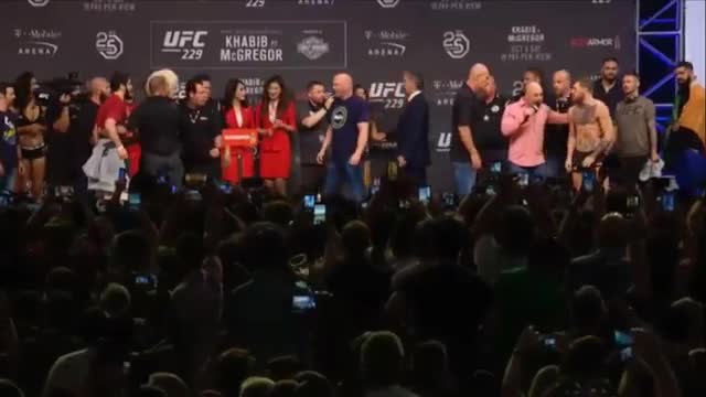 Конфликт между борцами разгорался все сильнее, Конор оскорблял Хабиба все сильнее, называя его "крысой", в ответ дагестанец обвинял ирландца в провокационном поведении.