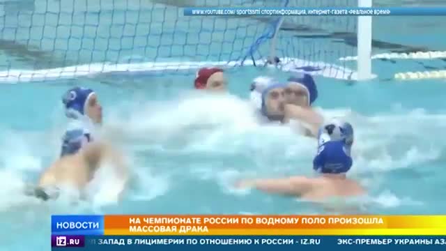 Матч чемпионата России по водному поло закончился побоищем. За несколько минут до конца встречи между казанским "Синтезом" и волгоградским "Спартаком" прямо в бассейне развязалась драка, к которой присоединились даже запасные игроки.
