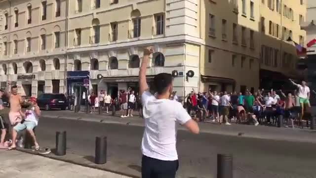 Голый английский болельщик, кувыркающийся на улицах Марселя, попал на видео