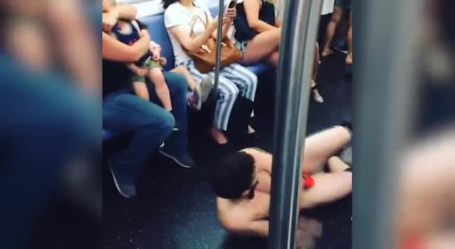 На ролике мужчина решил исполнить пассажирам подземки стриптиз. Видео пользователи выложили в социальных сетях.