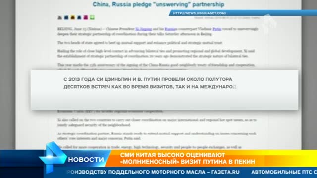 "Президент России Владимир Путин 25 июня завершил свой первый в этом году "молниеносный" визит в Китай. Приезд российского лидера пришелся на важный момент в развитии китайско-российских отношений и имеет особое значение".
