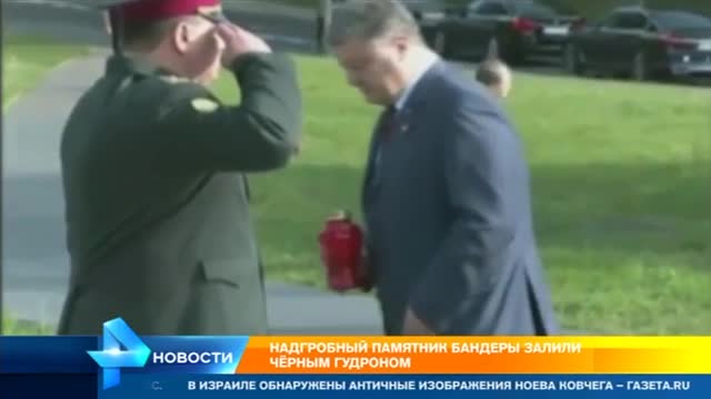 Постамент Бандере оскверняют уже далеко не впервые. Однако на этот раз это произошло буквально спустя несколько дней после того, как Порошенко посетил в Польше монумент жертвам Волынской резни, устроенной как раз бандеровцами.