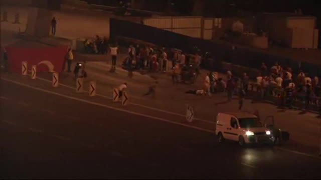 Страсти постепенно накалялись. В Сети начали появляться ролики вроде этого. Здесь толпу сторонников Эрдогана расстреливают в Стамбуле. Митингующие идут по проезжей части, в процессе чего по ним открывают огонь, после чего лежать на асфальте остаются десятки людей.