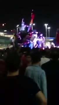 Затем, после первого обращения к нации действующего президента Тайипа Эрдогана, турки стали собираться митинги против сторонников госпереворота. Эти кадры были сняты в Стамбуле.