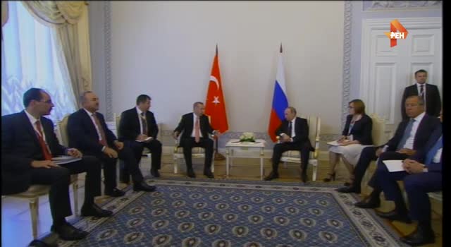 Во вторник, 9 августа Реджеп Таийп Эрдоган прибыл в Санкт-Петербург для встречи с Владимиром Путиным. Переговоры начались в Константиновском дворце.