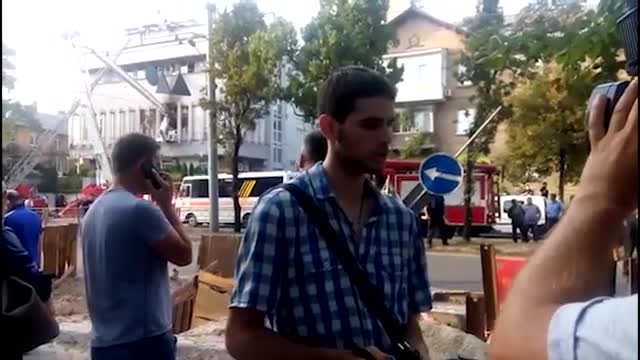 В ходе пожара пострадали 5 сотрудников "Интера". Возгорание возникло после того, как группа примерно в 20 человек сначала подожгла у здания шины, а затем бросила в него, предположительно, дымовую шашку.