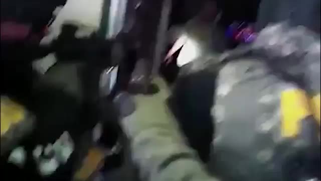 Бойцы спецназа подошли к двери дома, а один из офицеров начал энергично барабанить дверь и кричать. Его коллеги рассредоточились вокруг и взяли на прицел дверной проем.