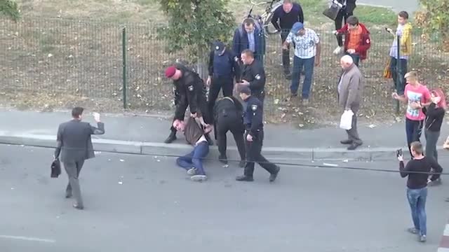 Очевидцы сняли на видео задержание мужчины с пистолетом на оживленной улице в Киеве