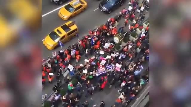 Несколько десятков человек собрались на митинг недалеко от "Трамп-Тауэр" в Нью-Йорке.