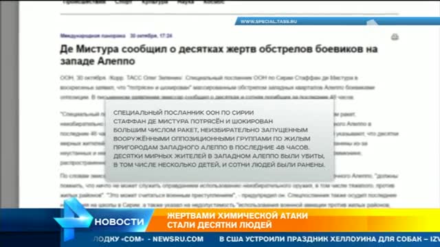 Практически незамеченной для западных стран осталась химическая атака в Алеппо. Хотя еще на прошлой неделе США представили в ООН целый доклад о том, что Асад может применить химоружие против мирного населения. Но вот конкретный случай – над Алеппо поплыли облака хлора. Врачи пытаются спасти десятки пострадавших. Вот только отраву выпустили совсем не те, от кого ожидалось.