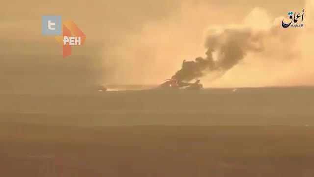 В Сети появилось видео обстрела российского вертолета, который совершил вынужденную посадку во время выполнения полета по доставке гуманитарной помощи в один из населенных пунктов в 40 километрах северо-западнее Пальмиры вечером в четверг.