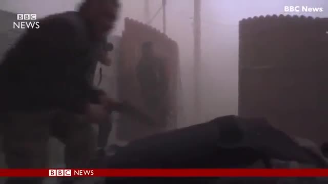 На кадрах видно, как бойцы выходят на улицу с заднего двора жилого дома. В этот момент смертник взорвал на улице автомобиль, начиненный взрывчатой. В результате теракта погибли пять солдат, сообщает BBC.