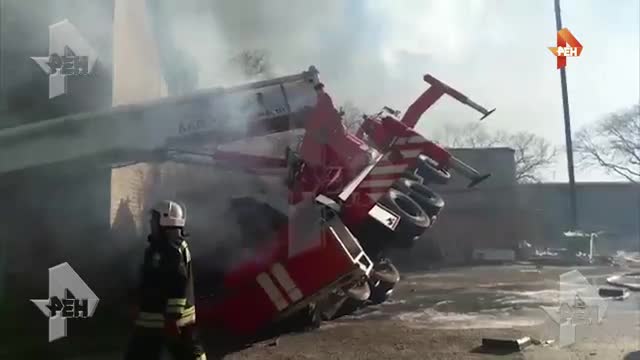 На кадрах видно, что спецтехника пострадала. Сотрудники МЧС продолжают работать на месте происшествия.