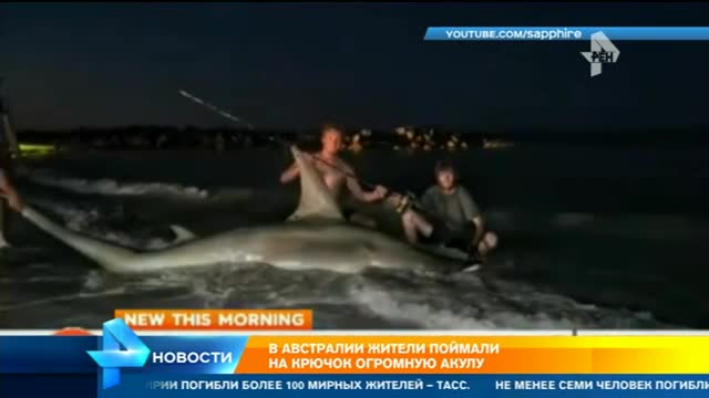 Жители Австралии поймали на крючок огромную акулу