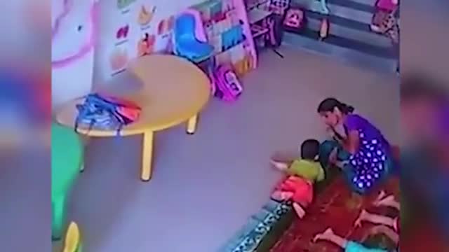 В Индии благодаря скрытой камере родителям удалось поймать с поличным жестокую няню, которая в их отсутствие издевалась над малышом. Женщина била ребенка и бросала его на пол.