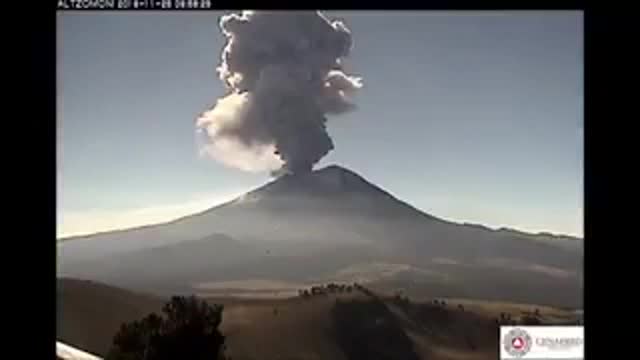 Камера запечатлела, как вулкан Попокатепетль выстрелил пеплом на высоту почти 5 километров.