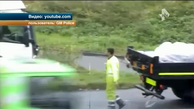 Неадекватный водитель напал на дорожных рабочих на трассе в Великобритании. Сначала шофер пытается решить вопрос оскорблениями и кулаками, но его оппоненты в оранжевых жилетах не хотят лишних проблем и закрываются в кабине.