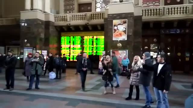 Напомним, что ранее на центральном железнодорожном вокзале Киева состоялся флешмоб, в рамках которого участники исполнили песню "Солнечный круг".