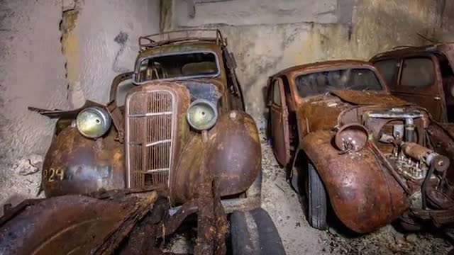 На записи запечатлено хранилище, куда местные жители прятали свои авто после вторжения немцев.