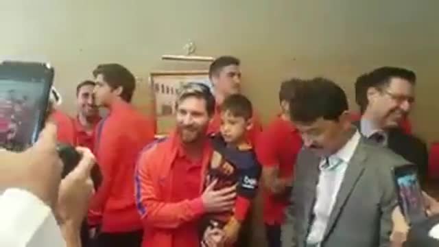 Форвард "Барселоны" Лионель Месси встретился с 5-летним мальчиком Муртазом Ахмади, который живет в Афганистане.