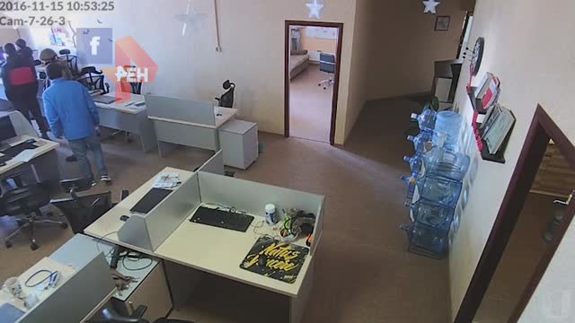 Пользователь приложил к своему посту видео, на котором запечатлено произошедшее в IT-компании. На записях видно, что полицейские, пытаясь вломиться в одно из помещений, выдергивают дверную ручку, а потом все вместе наваливаются на дверь, хотя в самом офисе в это время спокойно идет работа.