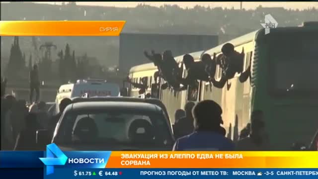 Всего за два дня Российский центр примирения вывез из города почти 10 тысяч человек. Среди них сотни раненых. Однако несколько часов назад операцию в очередной раз пытались сорвать: колонну автобусов обстреляли из минометов – это произошло в южном пригороде Алеппо Аль-Рамус.