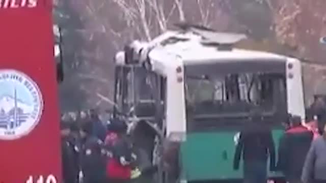 На кадрах видны жуткие повреждения на взорвавшемся автобусе.