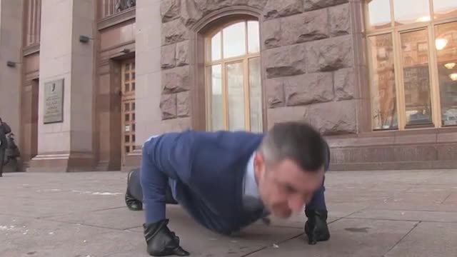 Видео: Кличко поддержал АТО, отжавшись у здания киевской мэрии 22 раза