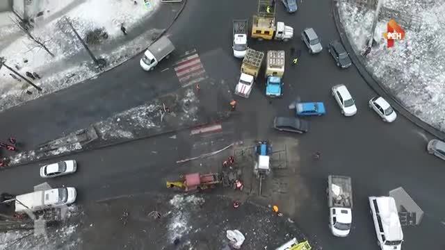 Последствия ночного взрыва в Донецке сняли с высоты птичьего полета. Реактивный снаряд взорвался в районе кольца на Мотеле.