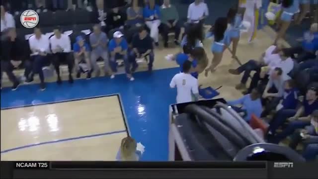 Инцидент произошел во время игры команд из университетов Дьюка и Каролины. О травмах, полученных девушкой при падении, не сообщается.