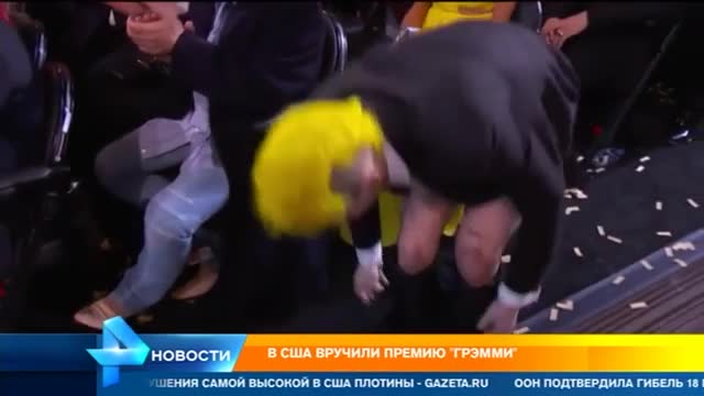 Но в этот раз нашелся тот, кто смог переплюнуть даже саму Леди Гагу: рэпер Сиии Лооо Грин в полностью золотом костюме сиял куда ярче, но не дольше. Не получив заветный граммофон, он расстроился и уехал. Вместо прощального поцелуя оставив неприличный жест.