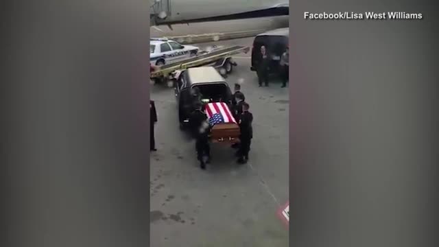 Видео: вдова американского военного плачет над его гробом в аэропорту