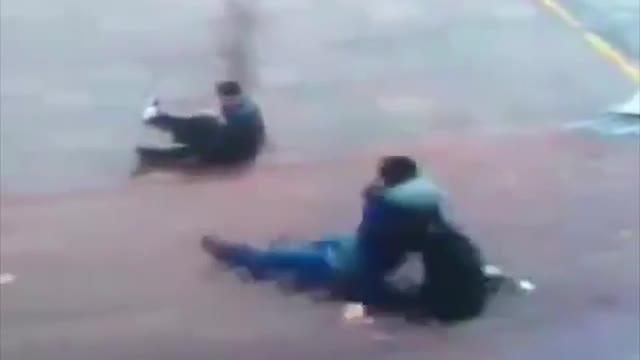 В Сети набирает популярность видео, как несколько человек попадают в "ловушку", пытаясь спуститься по скользкой лестнице. Инцидент произошел в Пекине в Китае.
