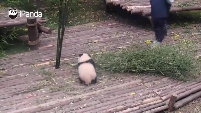 Тот относит ее еще дальше, но панда возвращается и снова цепляется к его ноге. Все дальнейшие попытки мужчины "отделаться" от маленькой "прилипалы" также заканчиваются неудачно.