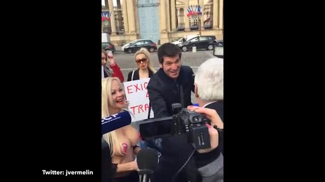 Видео: полиция задержала полуголую женщину-политика на улицах Франции