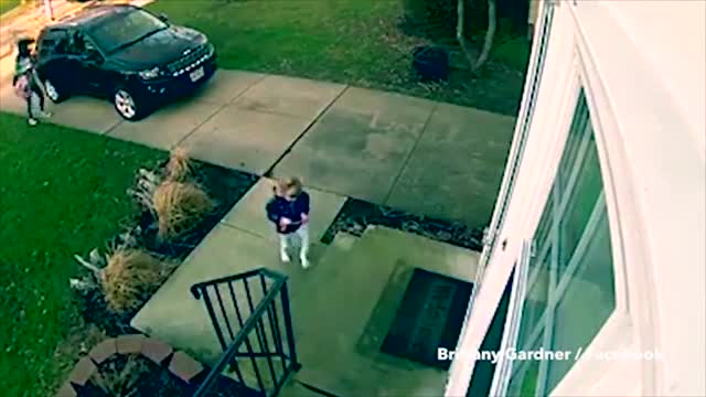 На его кадрах видно, как четырехлетняя Мэдисон Гарднер, выйдя из родительского внедорожника, спешит к входной двери дома. Как только малышка дергает ручку, мощный поток ветра силой распахивает дверь и ребенок улетает вместе с ней. Мама девочки сразу же спешит на помощь своему чаду.