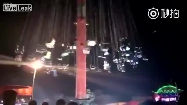 Очевидцы запечатлели на видео шокирующий момент обрушения карусели на ярмарке в Китае. Ничто не предвещает беды, как вдруг гигантская конструкция с подвешенными к ней на цепях креслами, в которых находились люди, падает вниз с внушительной высоты.