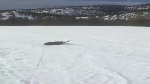 Судя по этим кадрам, жизнерадостный черный лабрадор по кличке Траки любит резвиться на снегу. Сотрудник лыжного патруля Крис Чайлд, опубликовавший этот ролик на своей странице в Facebook, уточнил, что это было, должно быть, самое долгое "катание" Траки за все время его увлечения скольжением по снегу.