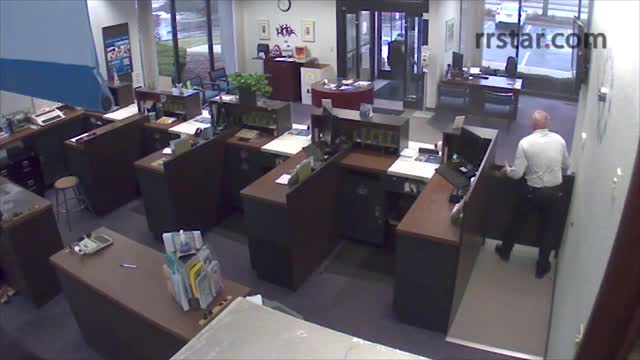 На кадрах ролика видно, что персонал банка быстро укрылся, после чего охранник стал вести огонь. Преступник выстрелил в ответ, после чего сотрудник банка вновь ранил его.