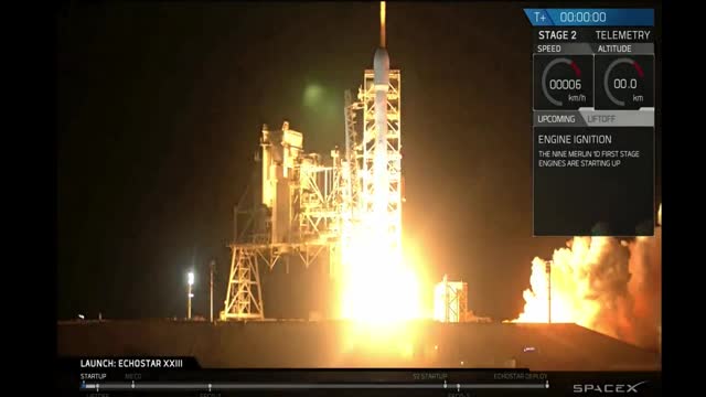 Видео пуска Falcon 9 со спутником EchoStar 23 на мысе Канаверал