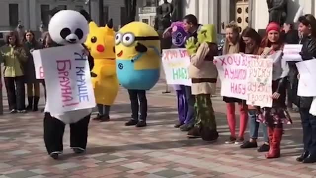 Свинка Пеппа, Губка Боб и Пикачу вышли на митинг к Верховной раде. Манифестанты требуют "прозрачного" конкурса на должность аудитора Национального антикоррупционного бюро Украины.