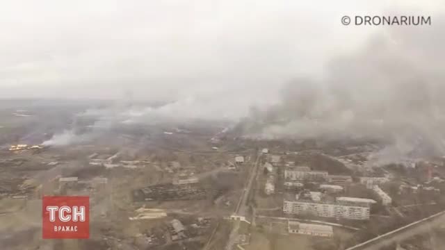 На записи видно, что помимо ангаров со снарядами на месте ЧП горят жилые дома.