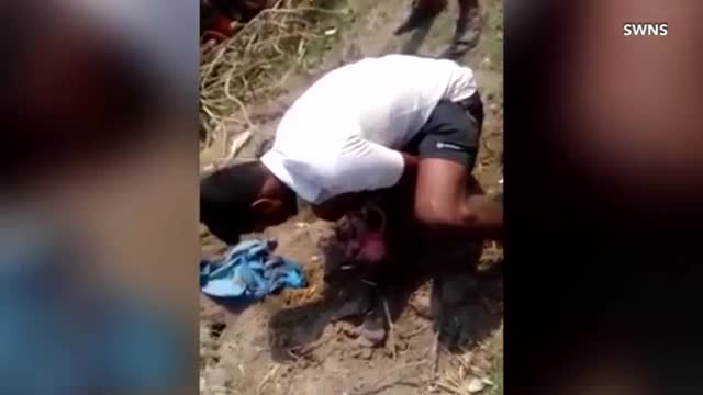 Похороненную заживо девочку нашли живой в Индии. Очевидцы сняли чудесное спасение на видео.