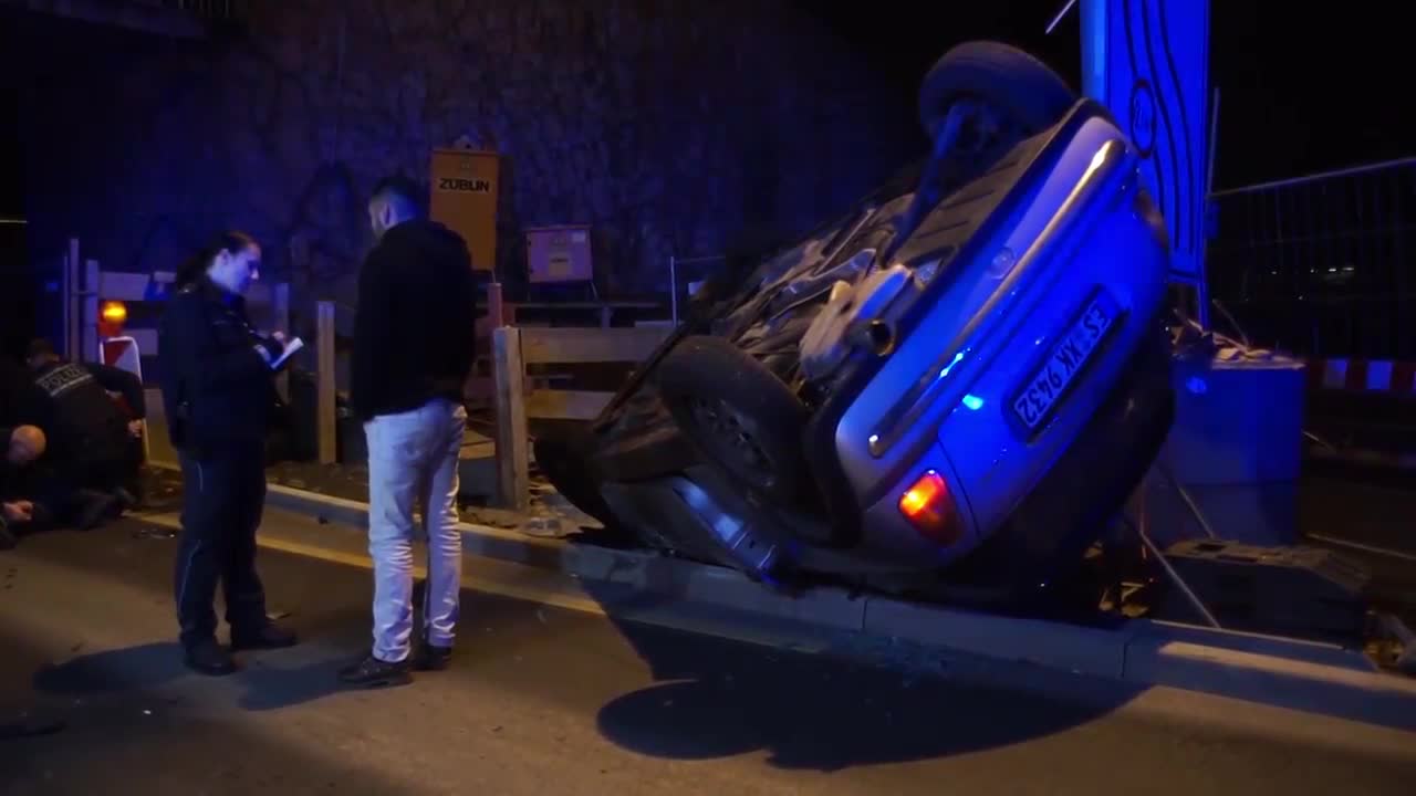 На кадрах видно, как мужчина, который по информации СМИ являлся участником ДТП, пытается закурить сигарету возле перевернутого автомобиля. После просьбы полицейского не делать этого мужчина отходит в сторону и снова пытается закурить, к нему подходит другой сотрудник полицииежду мужчинами начинается диалог, в ходе которого полицейский толкает "курильщика".